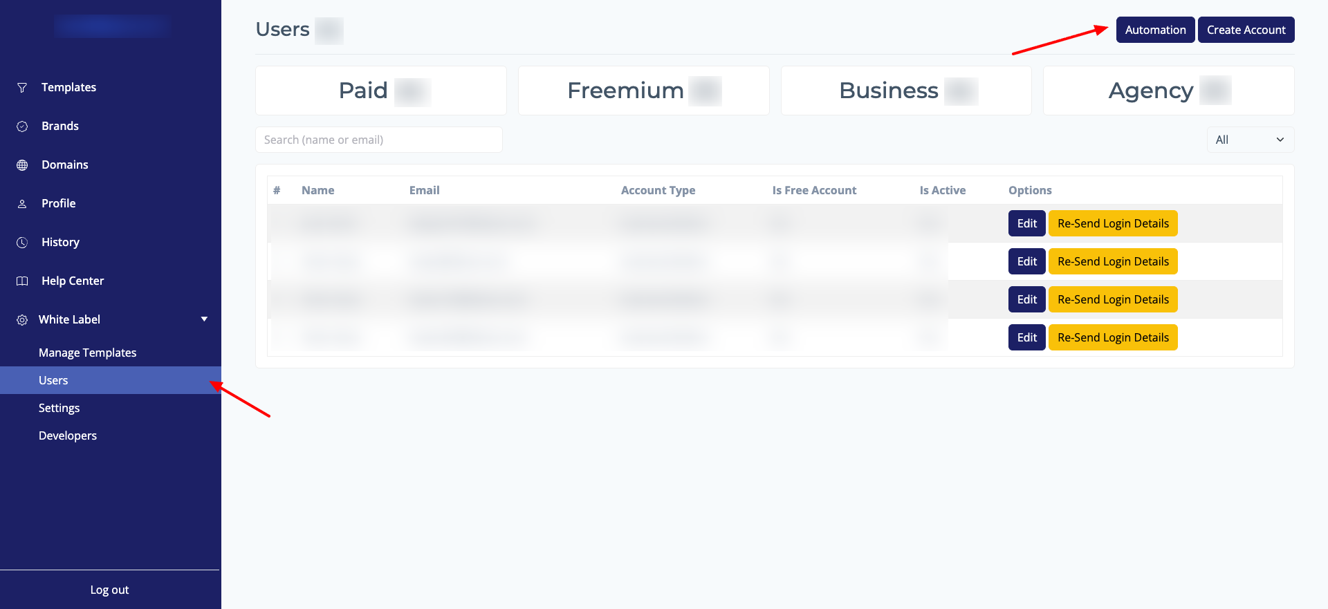 - You will find your api key when you click Automation button in White label -> Users page